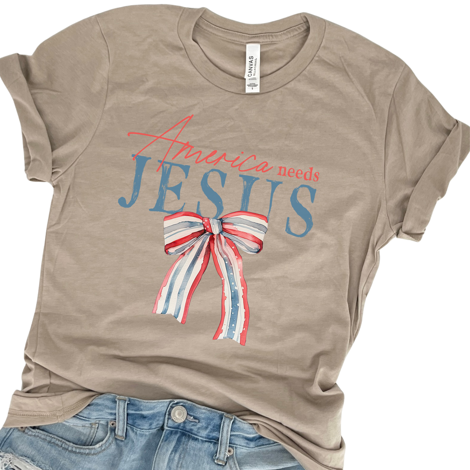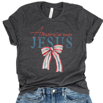 America Needs Jesus Patriotic Christian Graphic T-Shirt | ATTA TOOD®