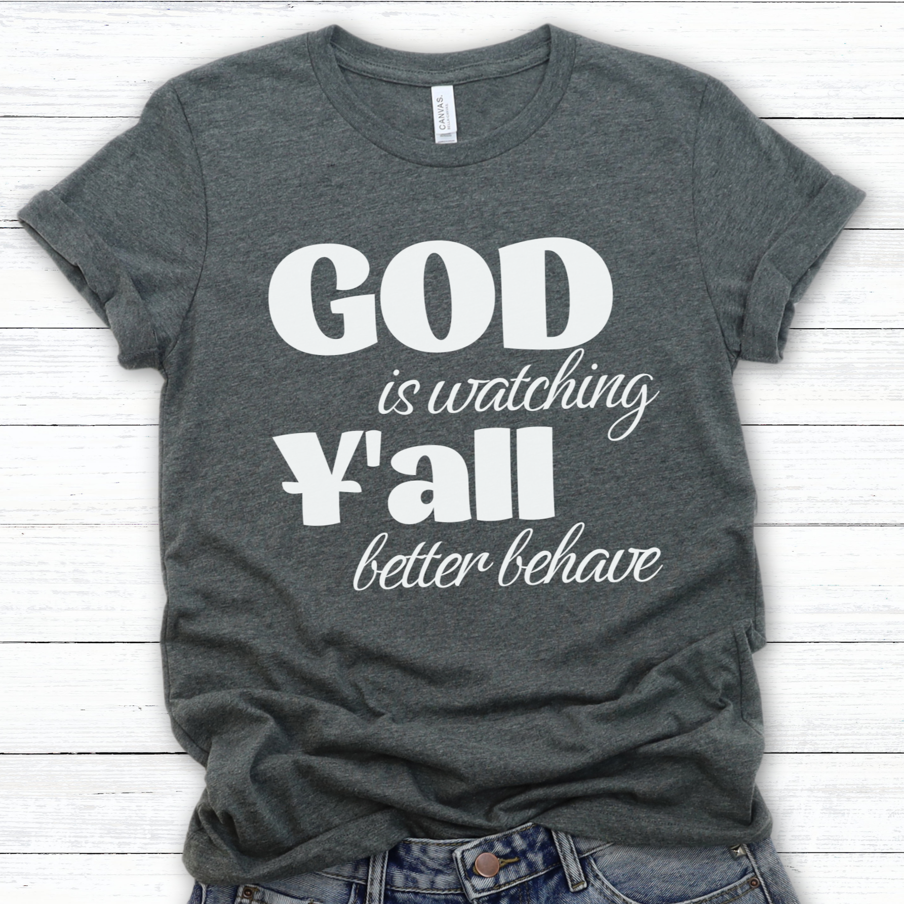 God Is Watching Funny Christian Graphic T-Shirt | ATTA TOOD®