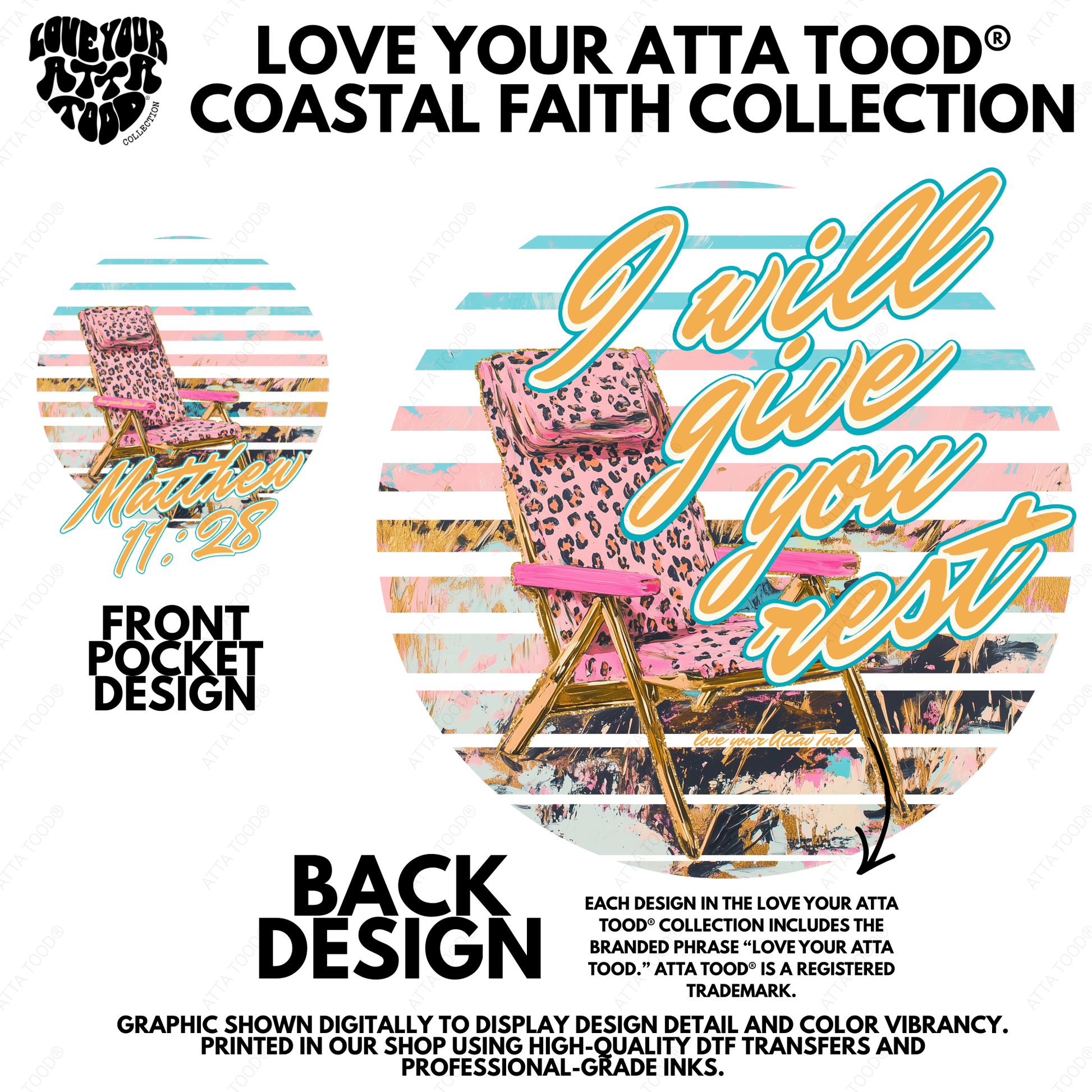 Each graphic includes our Love your ATTA TOOD® brand mark printed directly into the design for authentic brand recognition and consistent faith messaging.