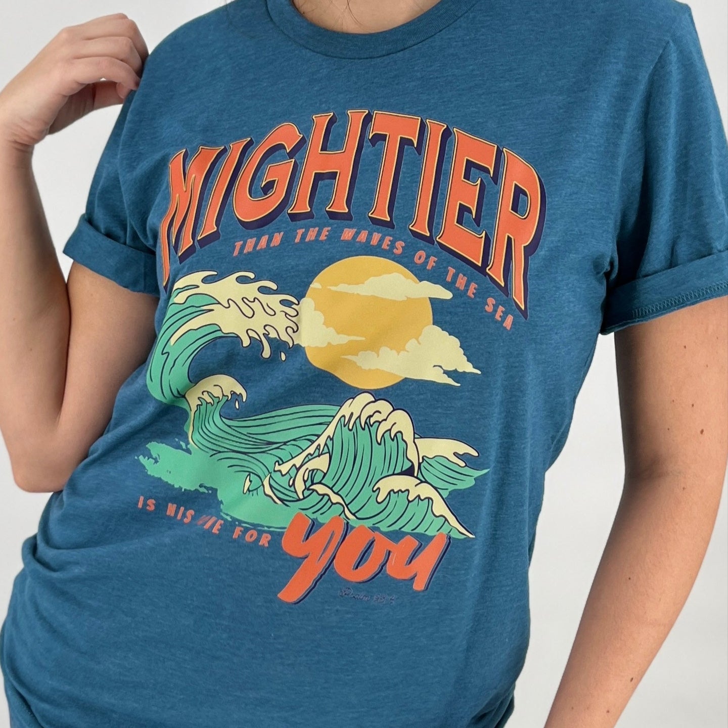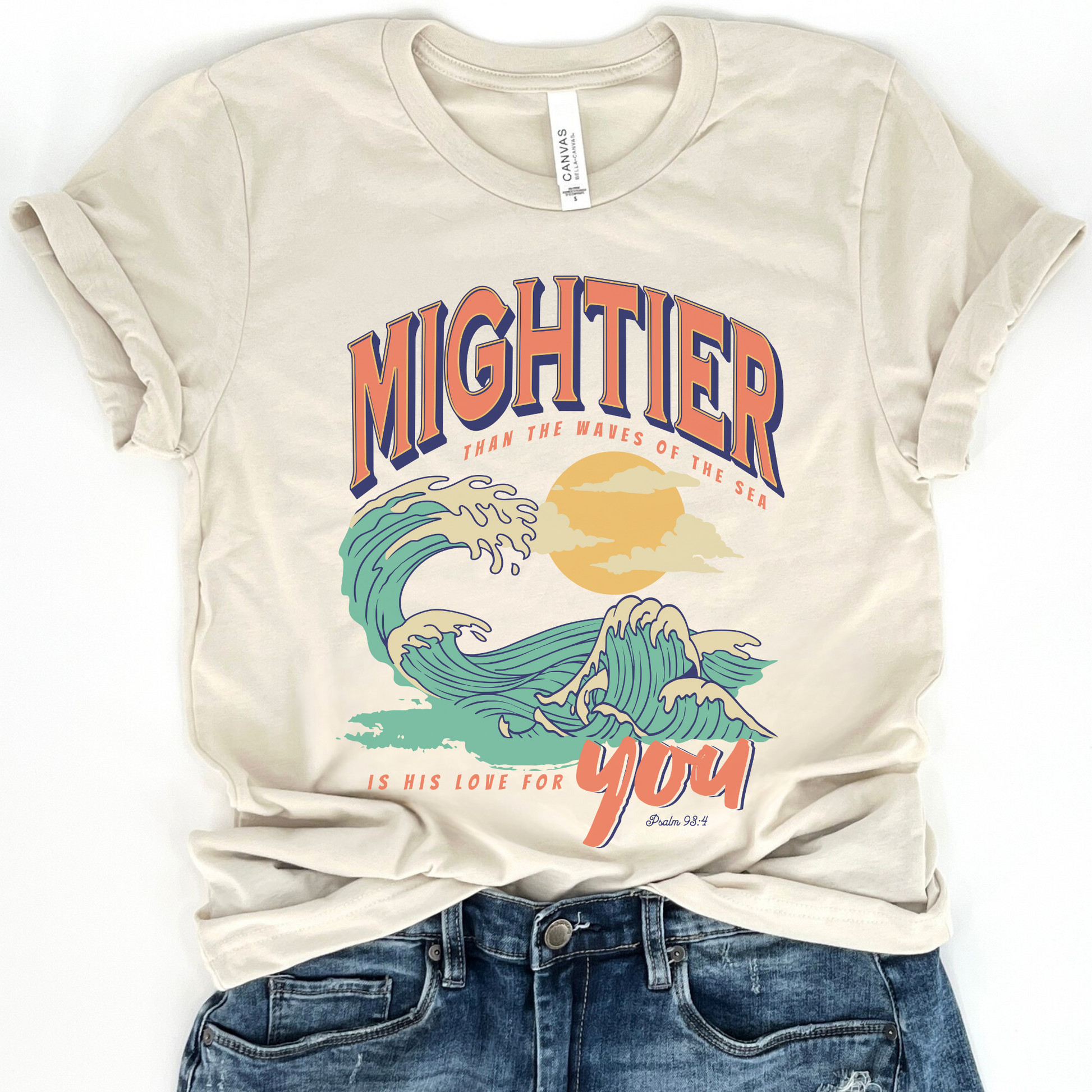 Mightier Than The Waves Christian Unisex Graphic T-Shirt | ATTA TOOD®