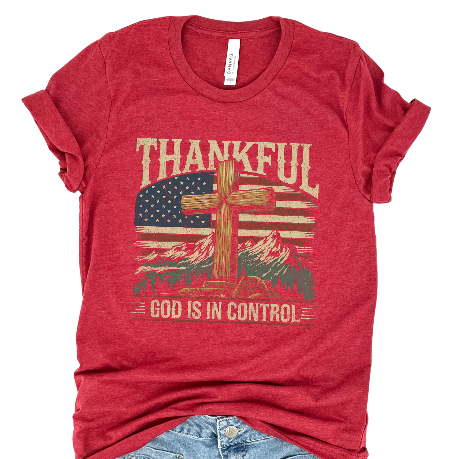 Thankful God Is In Control Patriotic Christian T-Shirt | ATTA TOOD®